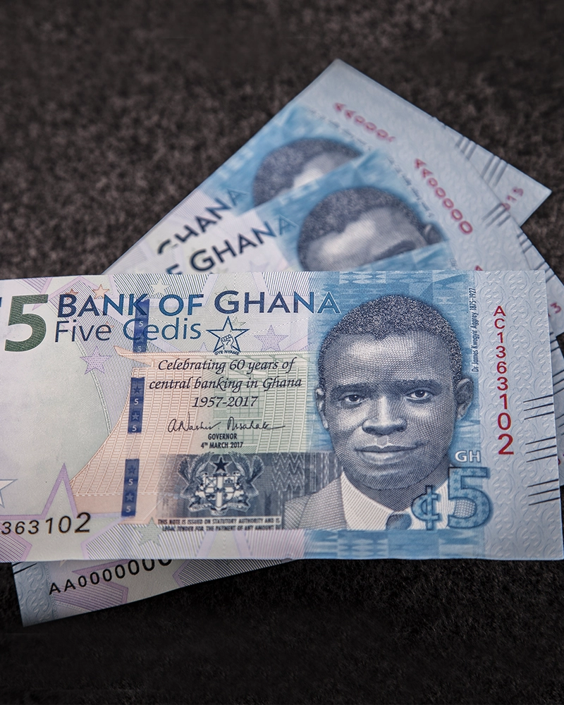 In 2017, the Bank of Ghana issued the 5 cedis commemorative banknote with the theme “Celebrating 60 years of Central Banking in Ghana (1957 – 2017).” The design of the GHS5 commemorative note draws inspiration from Dr James Kwegyir Aggrey, whose contribution to the national development sector went beyond the boundaries of the Gold Coast, the colonial name for Ghana.