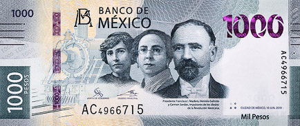 The new 1,000 Pesos banknote is designed to represent Mexico’s historical and natural heritage. It includes the images of Carmen Serdán, Hermila Galindo and Francisco I Madero, in recognition of the Mexican Revolution.