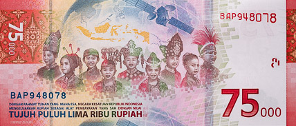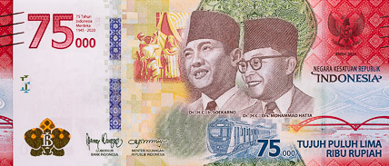 Popular with collectors, the 75.000 rupiah commemorative with RAPID micro-optics is being offered at up to 20 times its face value.